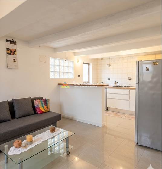 60MQ, ingresso su zona giorno con angolo cottura e angolo lavanderia, con accesso al giardino privato di 100 mq, in parte verde e in parte pavimentato con ghiaietto, ulteriore spazio accessorio, camera matrimoniale e servizio finestrato sul secondo livello.