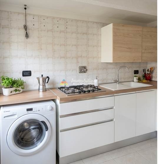 60MQ, ingresso su zona giorno con angolo cottura e angolo lavanderia, con accesso al giardino privato di 100 mq, in parte verde e in parte pavimentato con ghiaietto, ulteriore spazio accessorio, camera matrimoniale e servizio finestrato sul secondo livello.